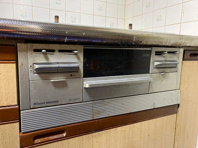 既存のビルトインコンロは、RX31W13A18RW、リンナイ、ガラストップ、天板幅60cmタイプ、ビルトインコンロです。