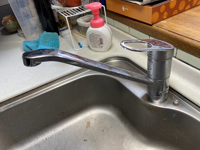 既存のキッチン水栓は、TKGG31E、TOTO、エコシングル、台付シングル混合水栓、、キッチン水栓です。