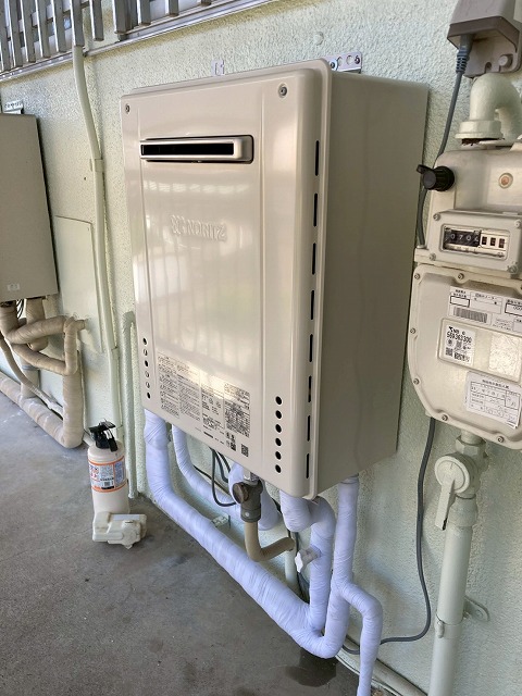 新しい給湯器は、GT-2070SAW-1 BL、ノーリツ、20号、オート、屋外壁掛型、給湯器です。