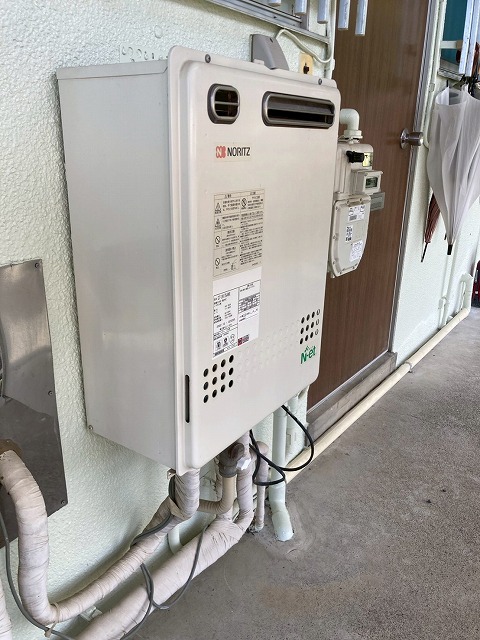 既存の給湯器は、GT-2417SAWX、ノーリツ、24号、オート、屋外壁掛型、給湯器です。