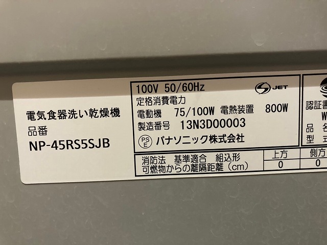 既存のビルトイン食洗機は、NP-45RS5SJB、パナソニック、食器洗い乾燥機、ビルトイン食洗機です。