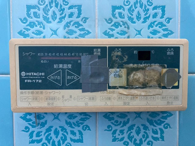既存の給湯器は、KZ-1620A、日立、16号、フルオート、浴槽隣接設置、2つ穴、屋外据置型、給湯器です。